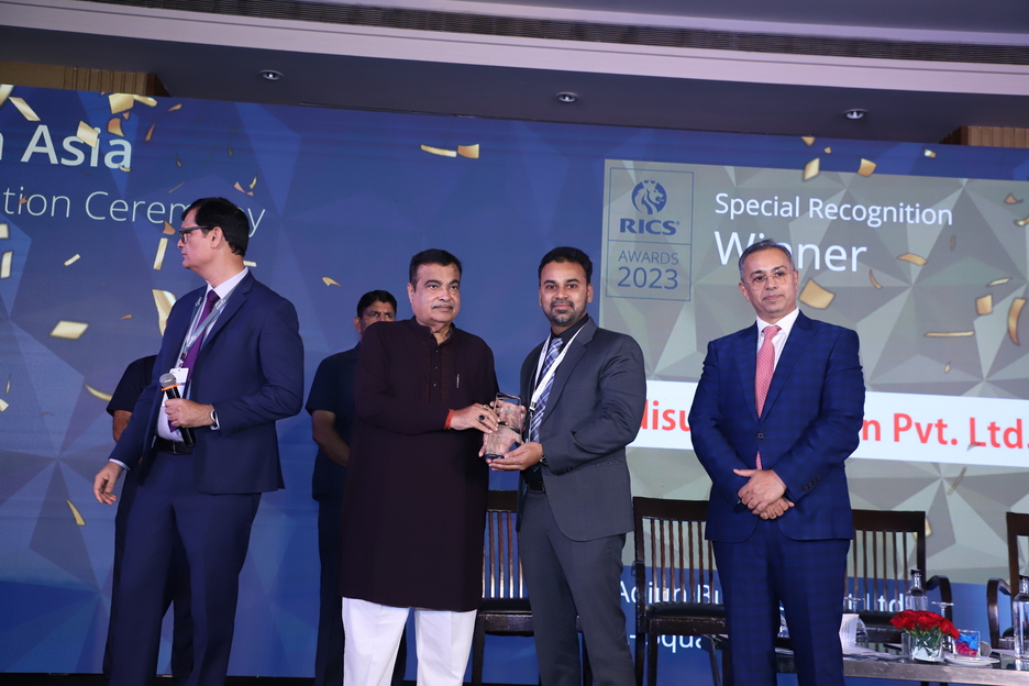 Mr Aditya Salankar, Director at Adisun Buildcon Pvt Ltd, was awarded special recognition by RICS (Royal Institute of Chartered Surveyors) at the South Asia awards 2023 for outstanding contribution in real estate in B tier city. This prestigious accolade was awarded by Shri Nitinji Gadkari, Minister of road transport and highways of India